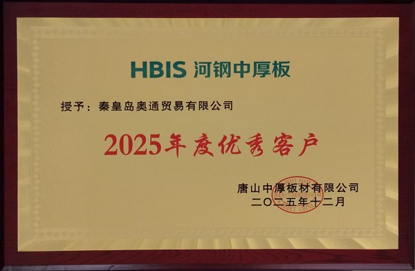 在河鋼集團(tuán)中厚板板塊的年度評(píng)選中,秦皇島奧通貿(mào)易有限公司憑借卓越的服務(wù)能力、堅(jiān)實(shí)的合作基礎(chǔ)以及良好的行業(yè)口碑,從眾多合作伙伴中脫穎而出,被授予“2025年度優(yōu)秀客戶(hù)”榮譽(yù)稱(chēng)號(hào)。